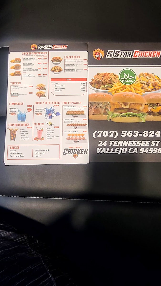 If you're craving a delicious and satisfying meal, look no further than the Five Star Chicken Menu at their convenient location on 24 Tennessee St, Vallejo, CA. Here, you’ll find a variety of tasty options that are sure to hit the spot. From their signature crispy fried chicken to mouthwatering sides, there’s something for everyone to enjoy. Whether you’re in the mood for a classic combo or something with a little more flair, the menu offers a range of choices that are perfect for a quick bite or a relaxed meal with friends.